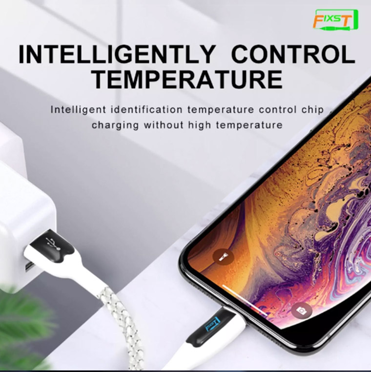 Iphone LED USB braided cable, fast charging. Strong compatibility.
